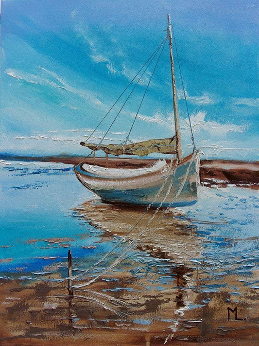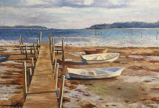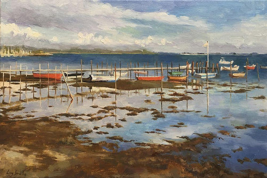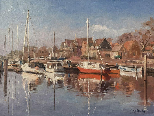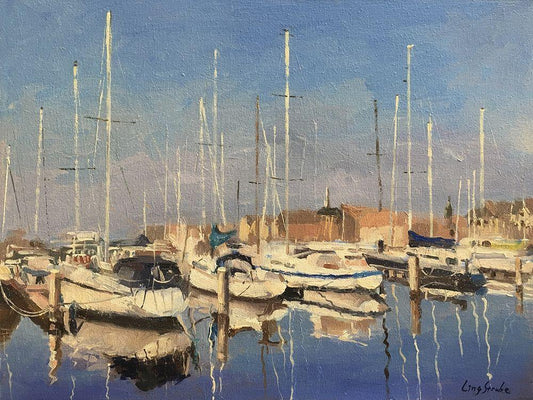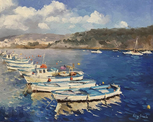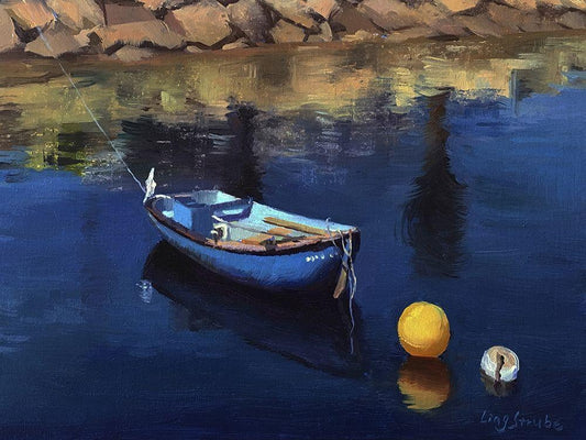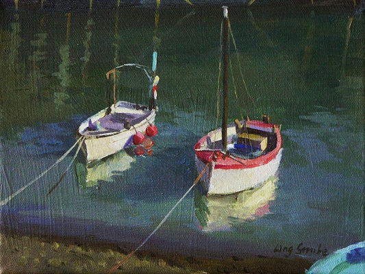 The Boats White Modern Wood Framed Art Print with Double Matting by Strube, Ling