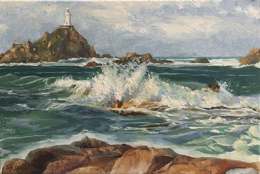 Jersey Island Landscape White Modern Wood Framed Art Print with Double Matting by Strube, Ling