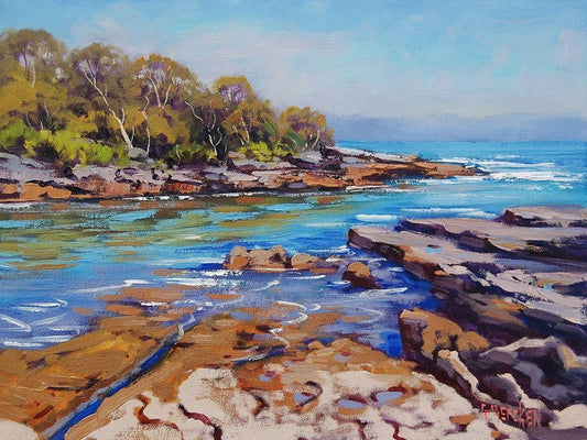 South Coast NSW Beachscape White Modern Wood Framed Art Print with Double Matting by Gercken, Graham