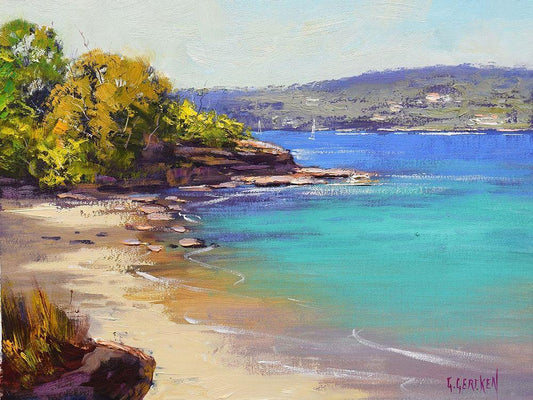Sydney Harbour Beach White Modern Wood Framed Art Print with Double Matting by Gercken, Graham