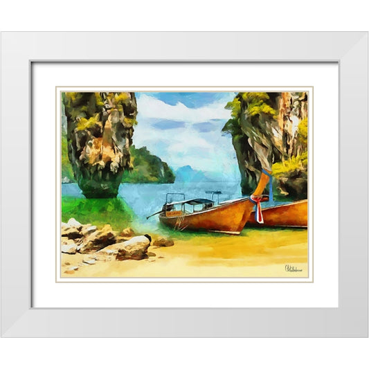 Bay between Rocks II White Modern Wood Framed Art Print with Double Matting by Medeiros, Celito