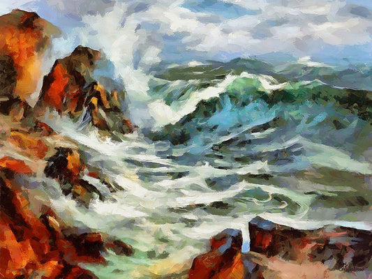 Waves in Storm III White Modern Wood Framed Art Print with Double Matting by Medeiros, Celito