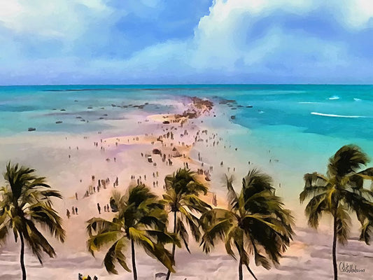 Endless Beach White Modern Wood Framed Art Print with Double Matting by Medeiros, Celito