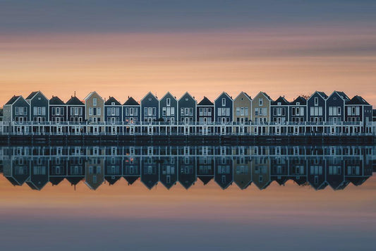 Drifting Houses White Modern Wood Framed Art Print with Double Matting by Franzoni, de Franzoni