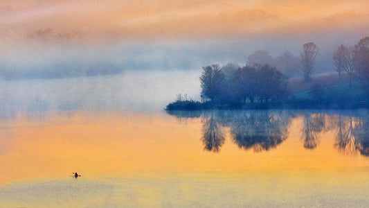 Into the Autumn Morning White Modern Wood Framed Art Print with Double Matting by Zhang, Eric