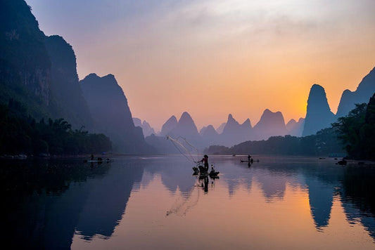 Busy Fisherman White Modern Wood Framed Art Print with Double Matting by Suharini, Mieke