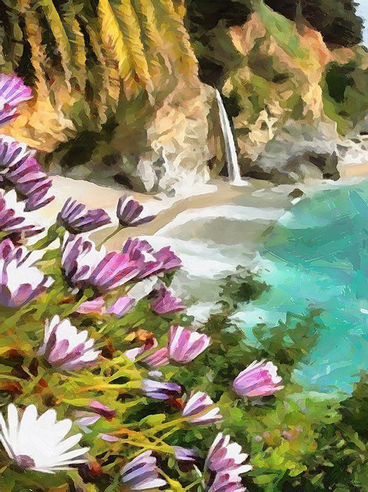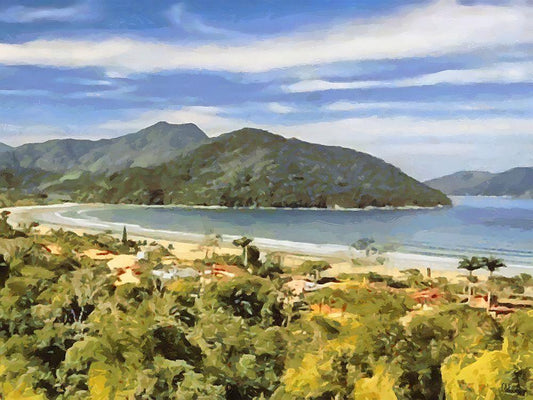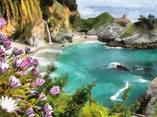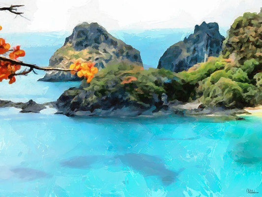 Bay with Watterfall - Diptych A White Modern Wood Framed Art Print with Double Matting by Medeiros, Celito