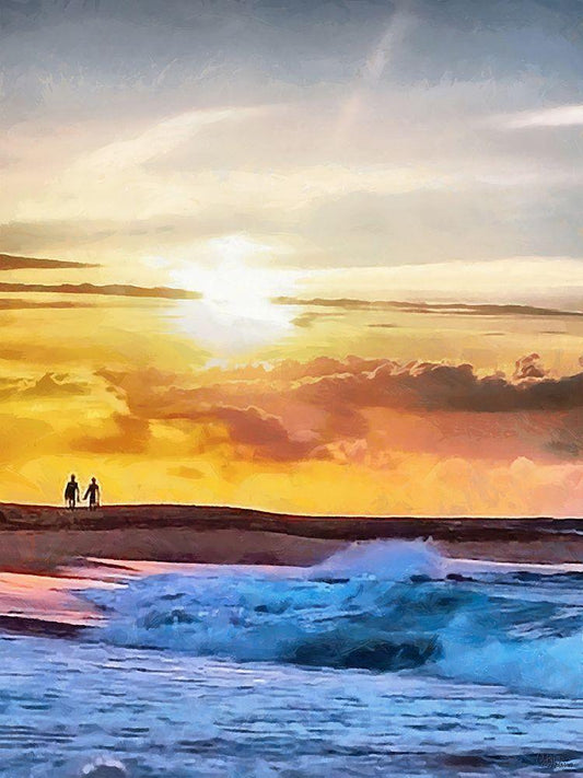 A Walk by Sunset on the Beach White Modern Wood Framed Art Print with Double Matting by Medeiros, Celito