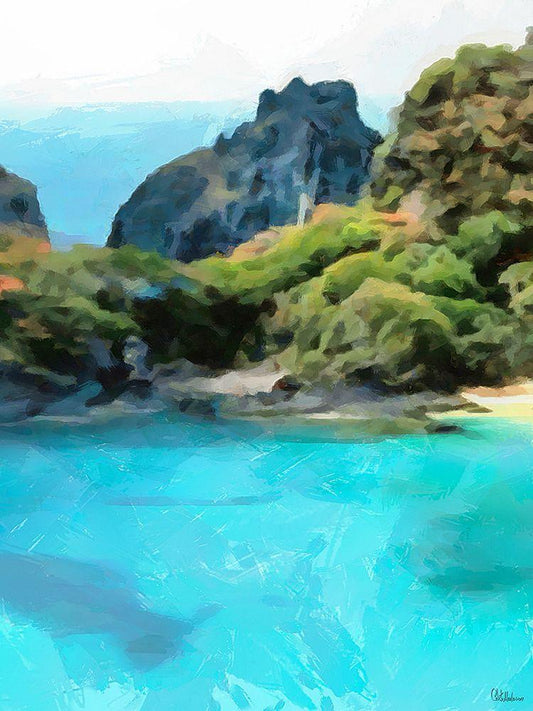 Bay with Rocks White Modern Wood Framed Art Print with Double Matting by Medeiros, Celito