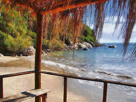 Sand Beach by the Rocks White Modern Wood Framed Art Print with Double Matting by Medeiros, Celito