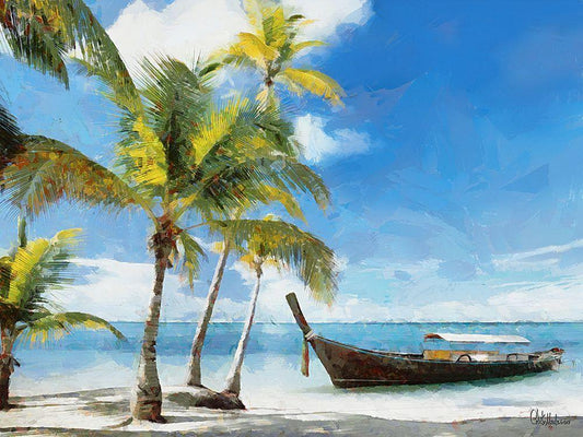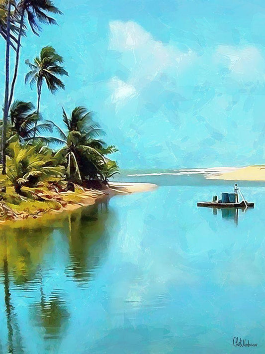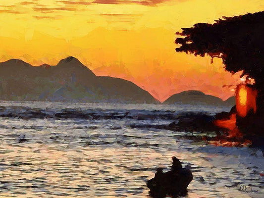 Fisherman are Returning Home White Modern Wood Framed Art Print with Double Matting by Medeiros, Celito
