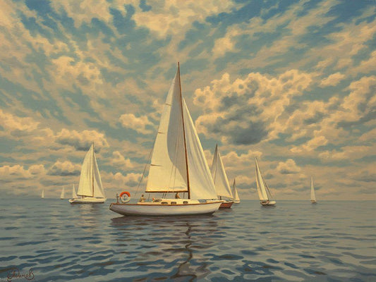 Sails on the Sea White Modern Wood Framed Art Print with Double Matting by Adamov, Alexey