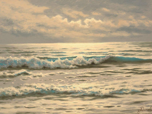 Wave in the Morning White Modern Wood Framed Art Print with Double Matting by Adamov, Alexey