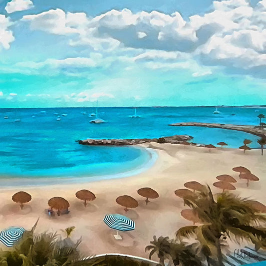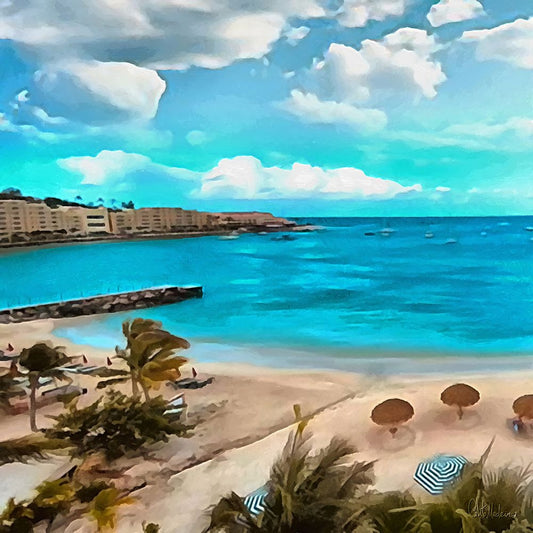 The Beach I White Modern Wood Framed Art Print with Double Matting by Medeiros, Celito