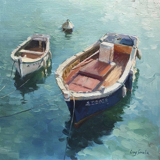 Two Boats White Modern Wood Framed Art Print with Double Matting by Strube, Ling