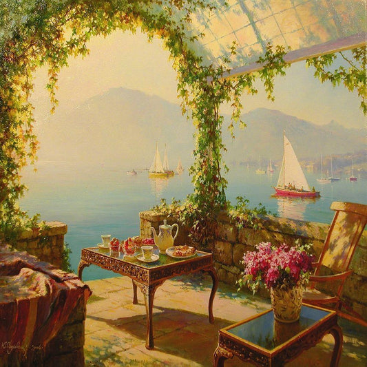 Porch by the Sea White Modern Wood Framed Art Print with Double Matting by Obuchovsky, Yury
