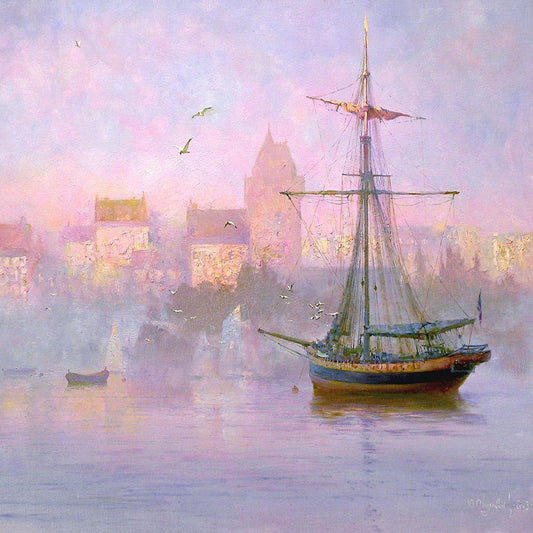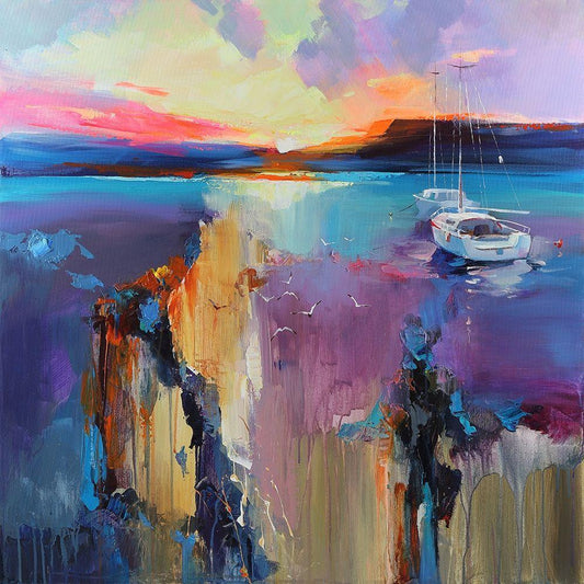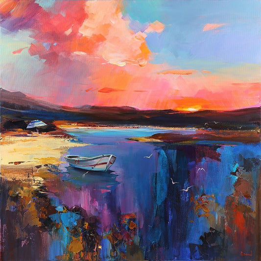 Boat in Golden Light White Modern Wood Framed Art Print with Double Matting by Strube, Ling