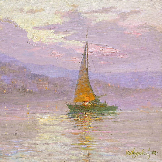 The Sail White Modern Wood Framed Art Print with Double Matting by Obuchovsky, Yury