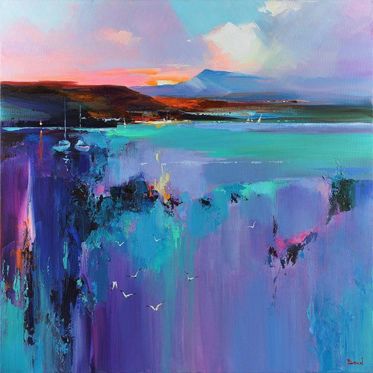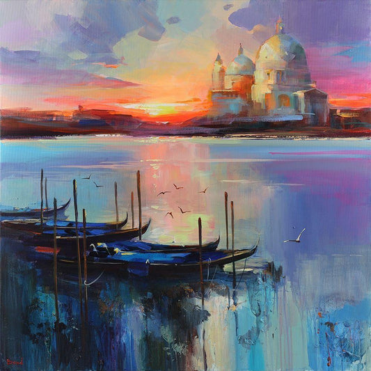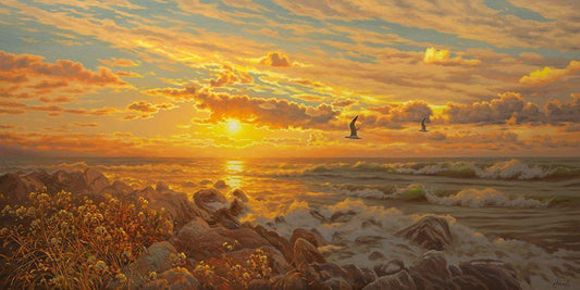 Sunset on the Sea White Modern Wood Framed Art Print with Double Matting by Medeiros, Celito