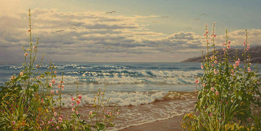 Flowers by the Sea White Modern Wood Framed Art Print with Double Matting by Adamov, Alexey