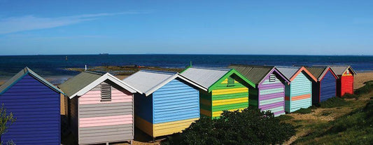 Colorful Bathing Boxes White Modern Wood Framed Art Print with Double Matting by Mackenzie, R.