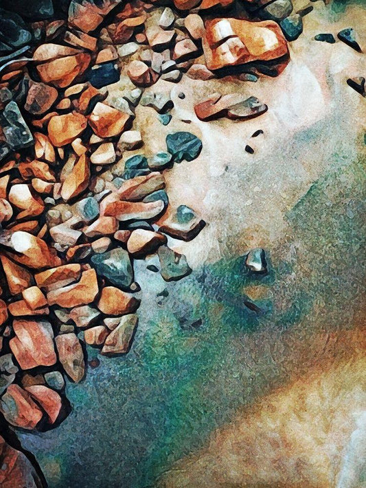 Rocky River Bank with Boats I White Modern Wood Framed Art Print with Double Matting by Aldridge, Ashley