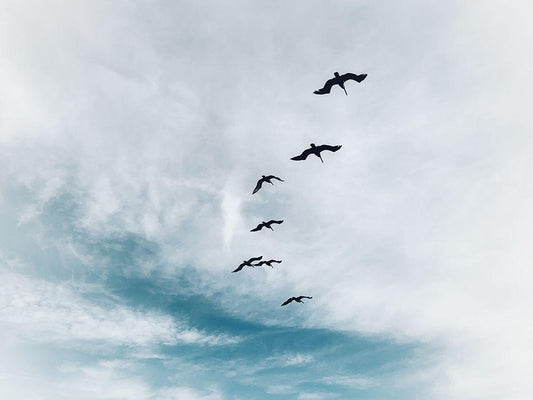 Beach Birds Flying White Modern Wood Framed Art Print with Double Matting by Curinga, Kim