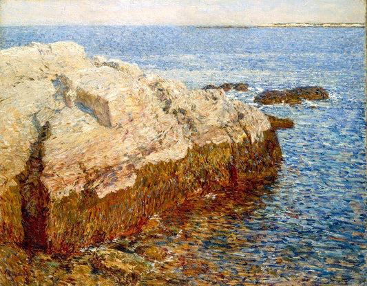 Cliff Rock Appledore White Modern Wood Framed Art Print with Double Matting by Hassam, Childe
