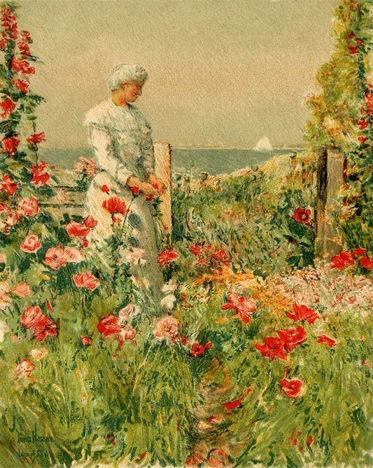 Poppy Bank White Modern Wood Framed Art Print with Double Matting by Hassam, Childe