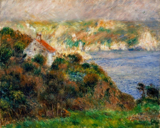 Fog on Guernsey White Modern Wood Framed Art Print with Double Matting by Renoir, Pierre-Auguste