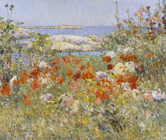 Poppies-Isles of Shoals White Modern Wood Framed Art Print with Double Matting by Hassam, Childe