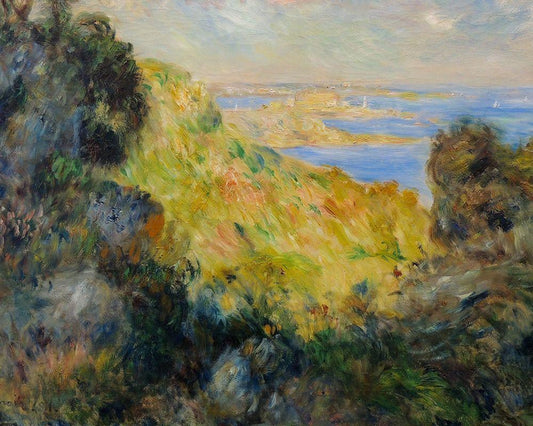 Bay of Salerne White Modern Wood Framed Art Print with Double Matting by Renoir, Pierre-Auguste