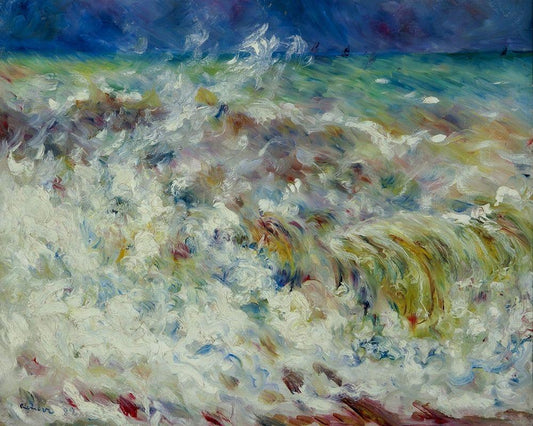 The Wave White Modern Wood Framed Art Print with Double Matting by Renoir, Pierre-Auguste