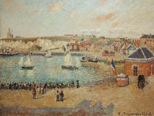 View of the Dieppe outer harbor White Modern Wood Framed Art Print with Double Matting by Pissarro, Camille