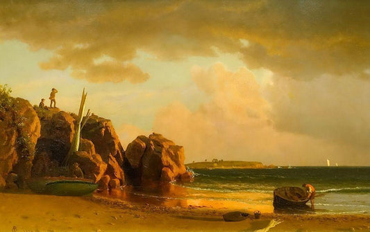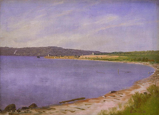 View Near Newport White Modern Wood Framed Art Print with Double Matting by Bierstadt, Albert