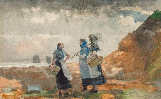 Three Fisher Girls, Tynemouth White Modern Wood Framed Art Print with Double Matting by Homer, Winslow