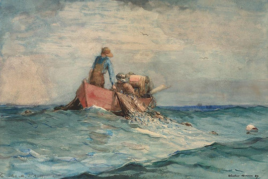 Hauling in the Nets White Modern Wood Framed Art Print with Double Matting by Homer, Winslow