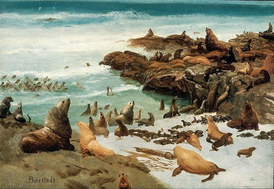 Seal Rock, California White Modern Wood Framed Art Print with Double Matting by Bierstadt, Albert