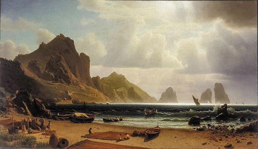 Fishing Boats at Capri White Modern Wood Framed Art Print with Double Matting by Bierstadt, Albert