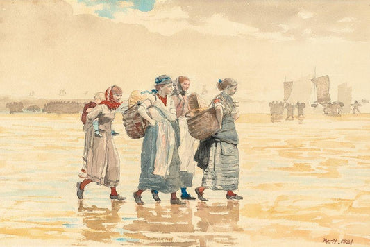 Four Fishwives on the Beach White Modern Wood Framed Art Print with Double Matting by Homer, Winslow