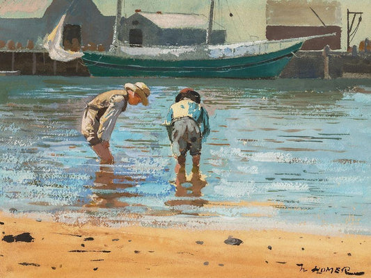 Boys Wading White Modern Wood Framed Art Print with Double Matting by Homer, Winslow