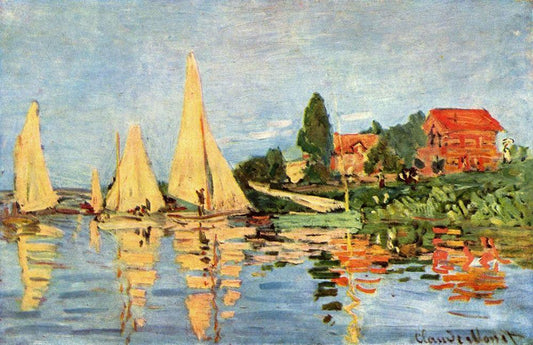 Regatta in Argenteuil White Modern Wood Framed Art Print with Double Matting by Monet, Claude