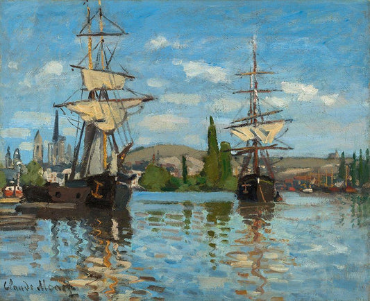 Ships Riding on the Seine at Rouen White Modern Wood Framed Art Print with Double Matting by Monet, Claude