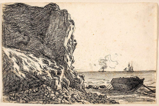 Rocks at Port-Goulphar, Belle-ile White Modern Wood Framed Art Print with Double Matting by Monet, Claude