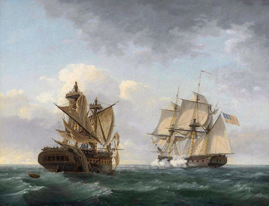 USS Wasp and HMS Frolic White Modern Wood Framed Art Print with Double Matting by Birch, Thomas