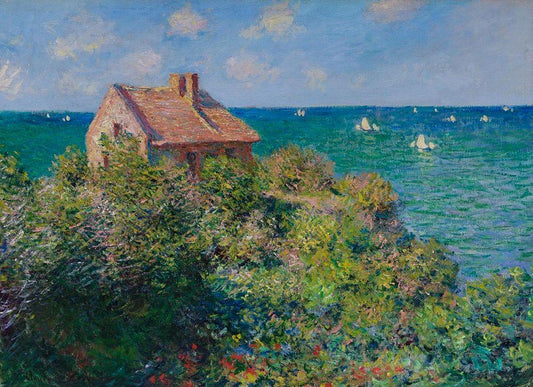 The Customs House at Varengeville White Modern Wood Framed Art Print with Double Matting by Monet, Claude