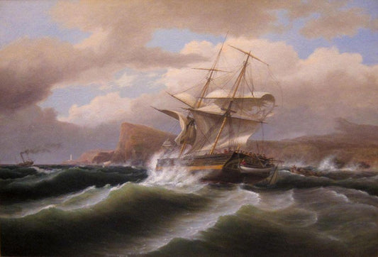 An American Ship in Distress White Modern Wood Framed Art Print with Double Matting by Birch, Thomas