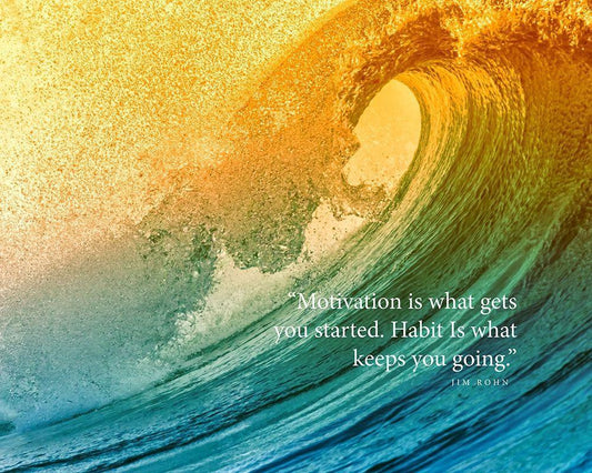 Jim Rohn Quote: Habit Keeps You Going White Modern Wood Framed Art Print with Double Matting by ArtsyQuotes