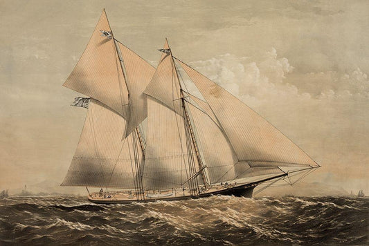 Yacht Puritan of Boston, 1885 White Modern Wood Framed Art Print with Double Matting by Unknown