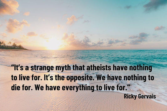 Ricky Gervais Quote: Strange Myth White Modern Wood Framed Art Print with Double Matting by ArtsyQuotes